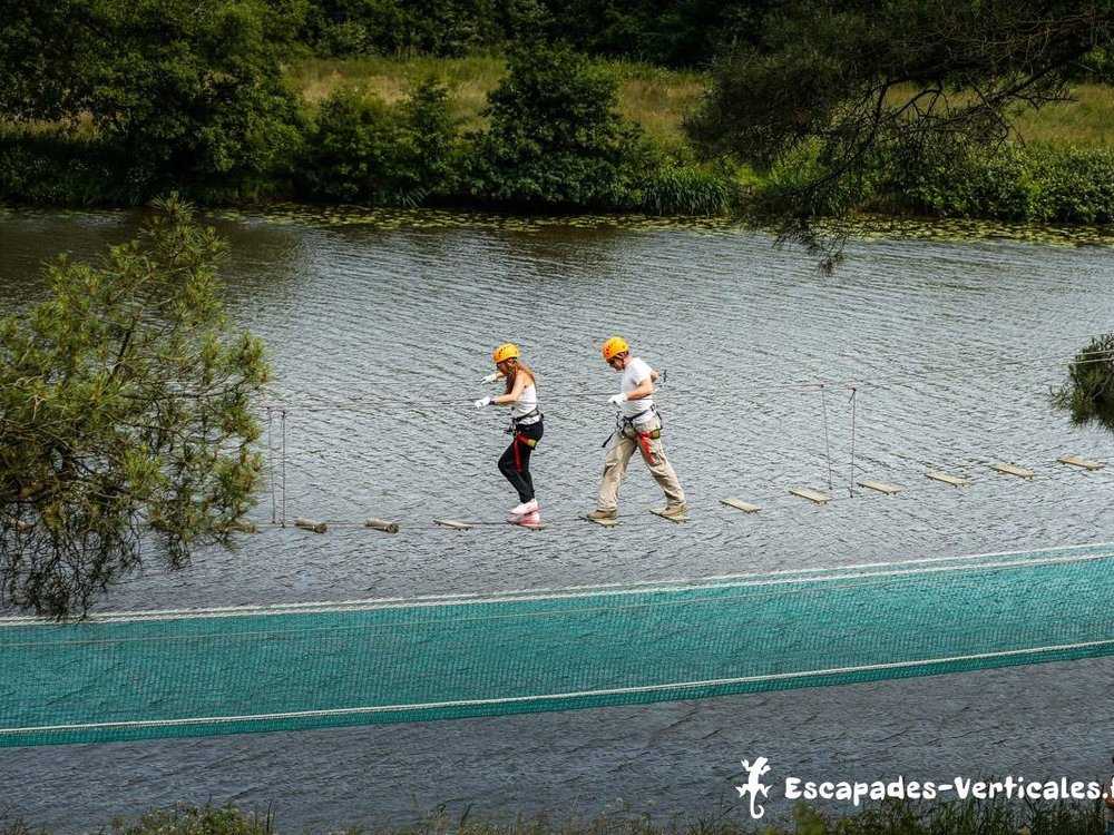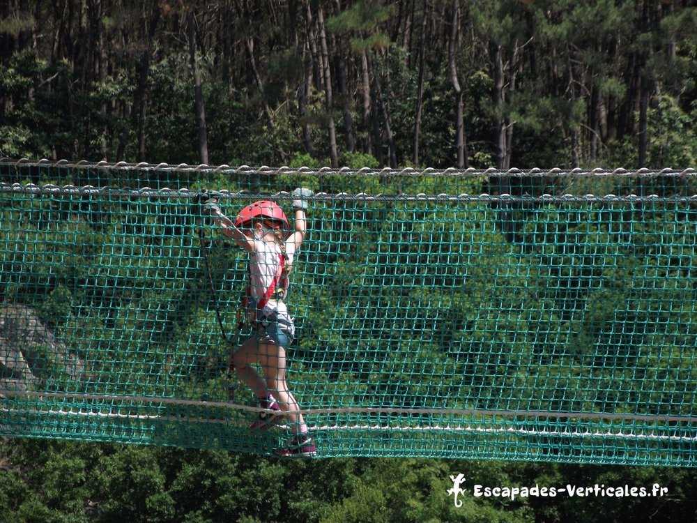 A partir de 7 ans. Via ferrata, tyroliennes, pont Népalais. Le point culminant du parcours se situe à 10 mètres de hauteur. C’est le passage test pour se rendre au parcours supérieur.