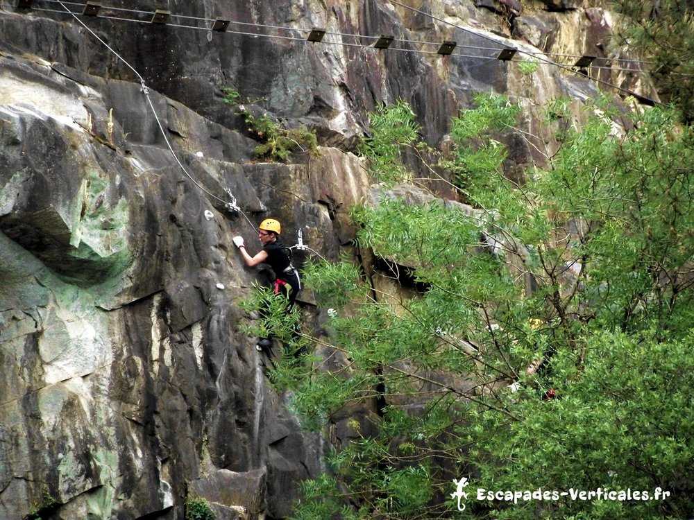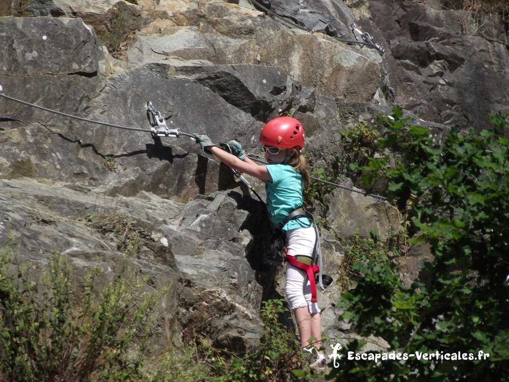 A partir de 9 ans. Vous escaladerez jusqu’au point culminant de la falaise : 25 mètres de hauteur. Le point de vue est remarquable. Via ferrata de plus en plus technique, tyroliennes, passerelle de planches qui laisse des souvenirs…